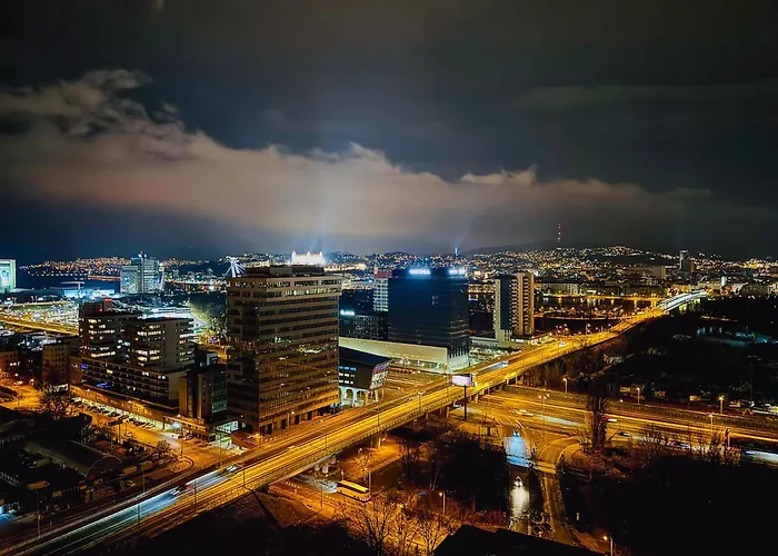 Top City View From 23Rd Floor - Parking Includedアパ-トメントには,器具でいっぱいの台所,バルコニ-,ワ-クデスク とコ-ヒ-/紅茶メ-カ-付きの客室があります. ブラチスラヴァ空港はアパ-トメントから10キロの距離にあります.